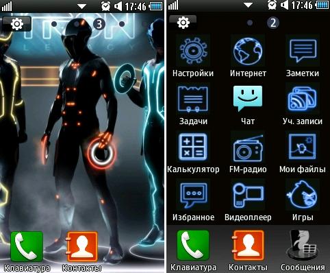 Tron theme by mentegy: тема для Samsung gt-s5250 Wave525, Samsung gt-s5330 Wave533, Samsung gt-s7230E Wave723 |